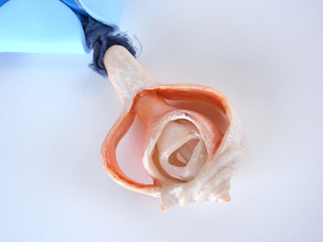 When I originally thought about what I might do for this theme, I had planned to do a piece with a whelk shell and I intended to either film or take snapshots of the process. The plan was to embed a tutorial on my blogpost about the piece. Alas, with the lack of time and last minute studio work, I did not have a chance to do a video or photos, plus, the shell I decided to create is different from the whelk shell that I made for my She Sells Seashells Fairy House, and so the creating of it was another session of trial and error.